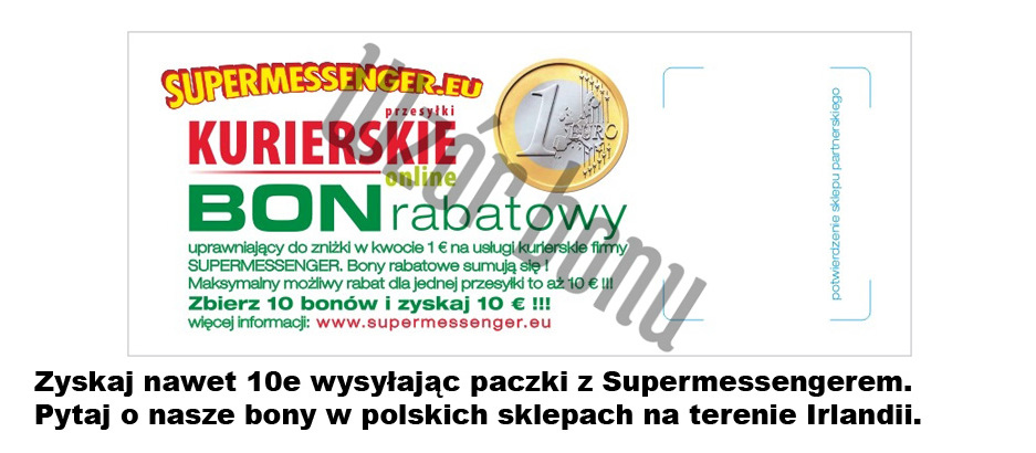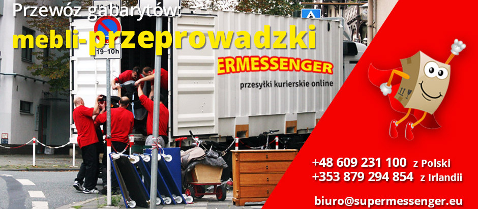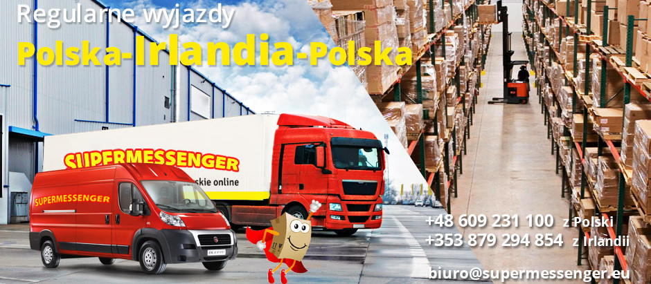 Od wielu lat dosc czesto korzystam z uslug wielu przewoznikow ale od roku mam to szczescie ze nawiazalem kontakt z firms Supermessenger I przekonalem sie ze w Polsce tez sa rzetelnie,profesjonalne i pelne zaangazowania firmy ktorym mozna polwierzyc przewoz przesylek,malych I duzych. Z firma Supermessenger mozesz miec pewnosc,ze twoja przesylka dotrze do ciebie bezpiecznie,szybko a ceny uslug Supermessenger 'a sa przystepne. Majac za soba doswiadczenie z ostatnich dziesieciu lat kozystania z uslug wielu przewoznikow z cala pewnoscia stwierdzam ze Supermessenger pozostawia konkurencje daleko w tyle. Goraco polecam. Daniel z Irlandii.